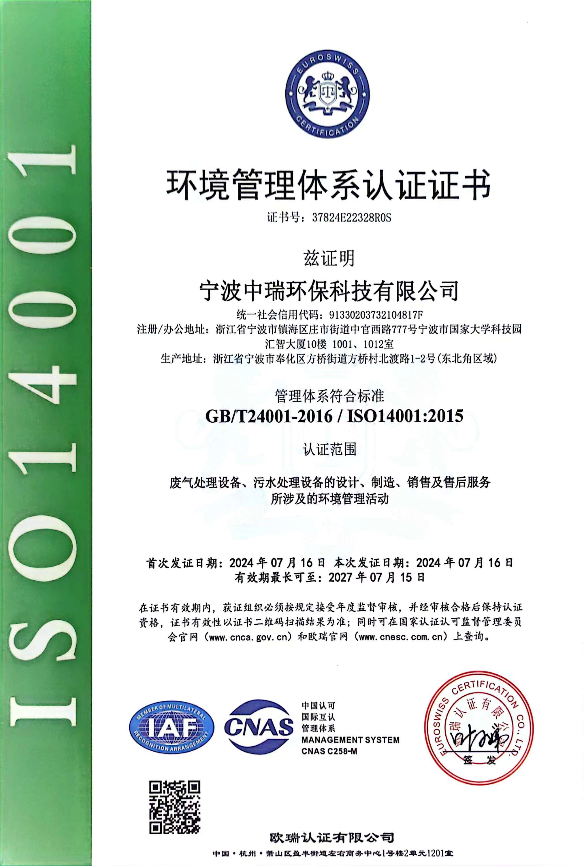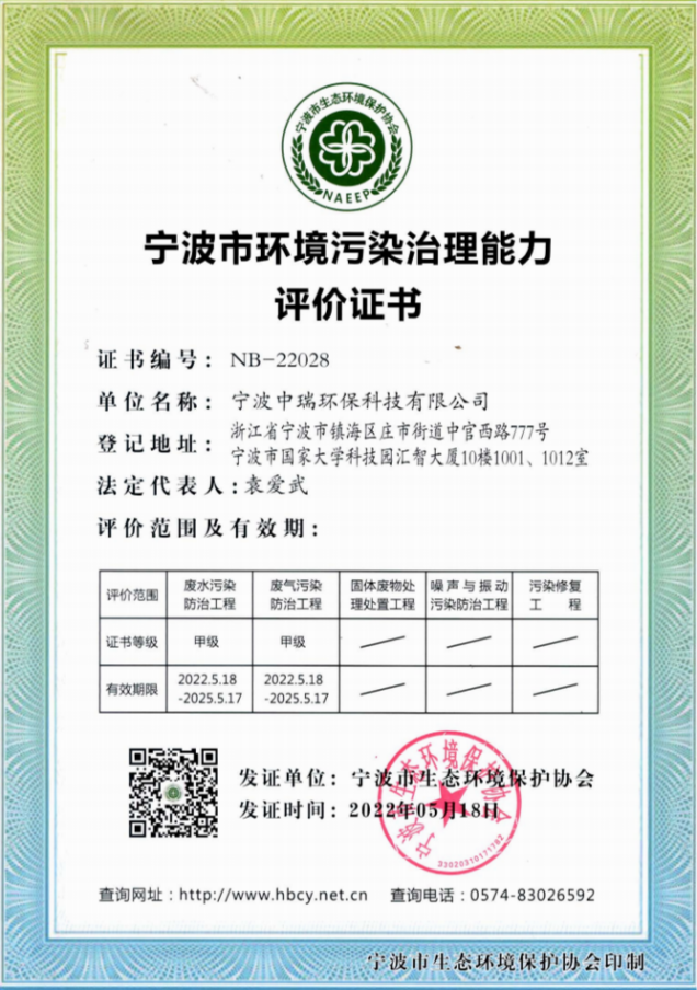 經(jīng)過多年努力,曾入選環(huán)境保護(hù)部“國家先進(jìn)污染防治示范技術(shù)名錄”、“國家鼓勵發(fā)展的環(huán)境保護(hù)技術(shù)名錄”的技術(shù)依托單位。相關(guān)技術(shù)入選《浙江省環(huán)境保護(hù)先進(jìn)適用技術(shù)匯編》,公司技術(shù)實(shí)力雄厚,擁有多項(xiàng)國家技術(shù)專利,榮獲寧波市科學(xué)技術(shù)成果。并通過了ISO9001:2015質(zhì)量管理體系、ISO14001:2015環(huán)境管理體系及ISO45001:2018職業(yè)健康安全管理體系認(rèn)證。